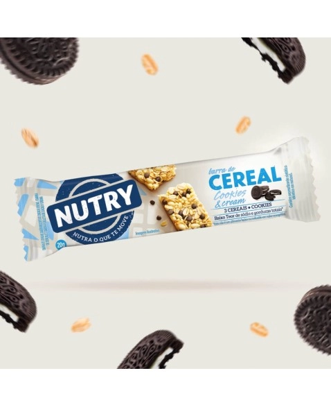 Barra de Cereais Cookies & Cream - Nutry - Display 24 X 20g - Com 3 Cereais e Cookies