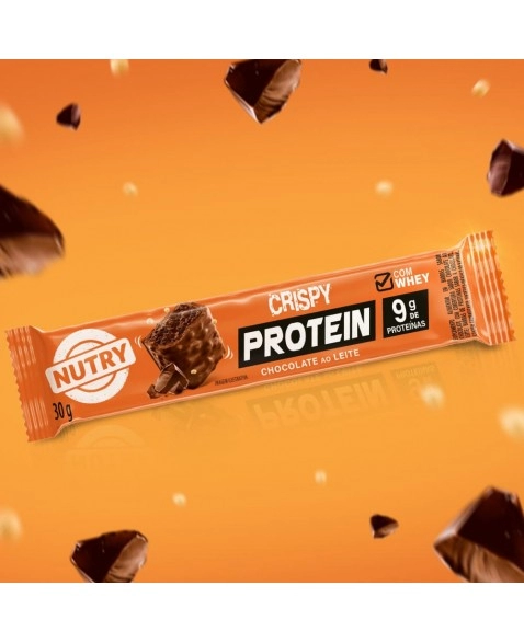 Barra de Proteínas Crispy Chocolate ao Leite - Nutry - Display 12 x 30g - Com Whey e 9g de Proteínas