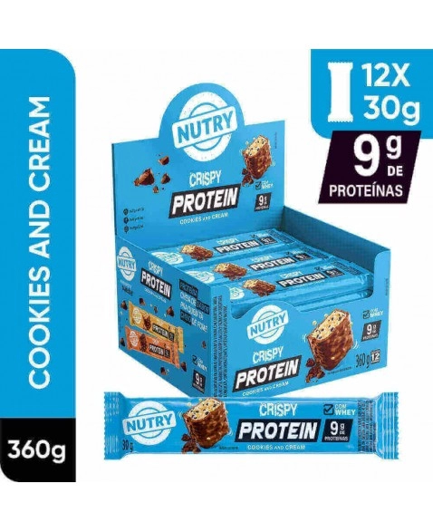 Barra de Proteínas Crispy Cookies & Cream - Nutry - Caixeta 3 x 30g - Com Whey e 9g de Proteínas