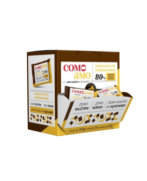 Snack Chocolate 72% e Banana Passa - ComoAmo - Display 16 X 20g