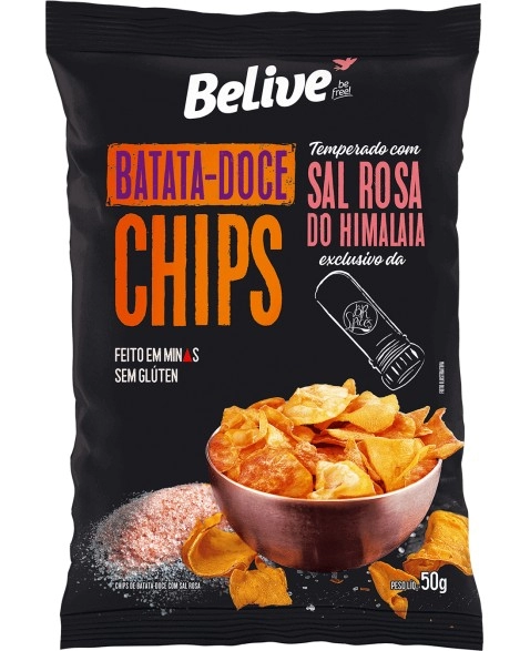Chips Batata Doce com Sal Rosa do Himalaia - Belive - Unidade 50g