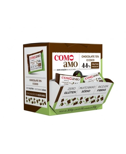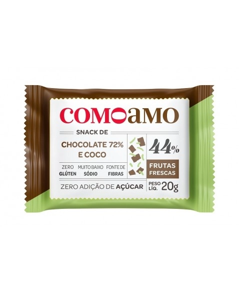 Snack Chocolate 72% e Coco - ComoAmo - Display 16 X 20g