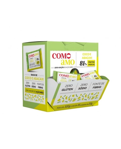 Snack Coco e Abacaxi - ComoAmo - Display 16 X 20g