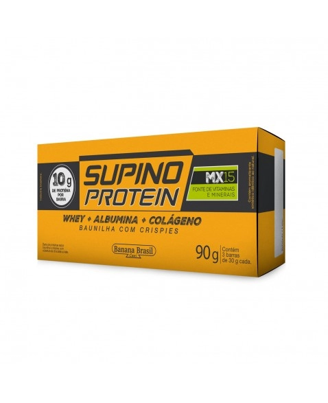 CATEGORIA ALIMENTAR>SEM GLÚTEN>Barra Supino Protein Baunilha e Cookies - Banana Brasil - Caixeta Com 3 Unidades De 30G