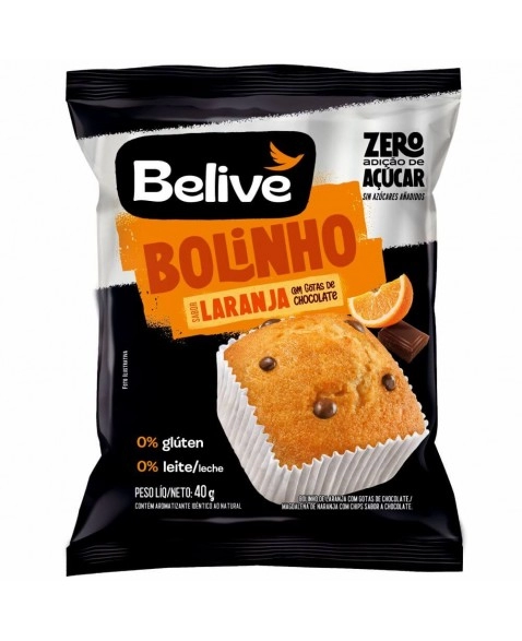 CATEGORIA ALIMENTAR>SEM GLÚTEN>Bolinho Laranja com Gotas Chocolate - Belive - Display 10 X 40g
