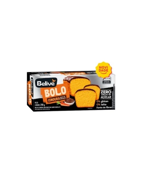 CATEGORIA ALIMENTAR>SEM GLÚTEN>Bolo de Cenoura com Cobertura de Chocolate Zero Açúcar - Belive - 290g
