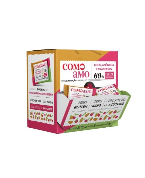 Snack Coco, Amêndoas e Cranberry - ComoAmo- Display 16 X 20g