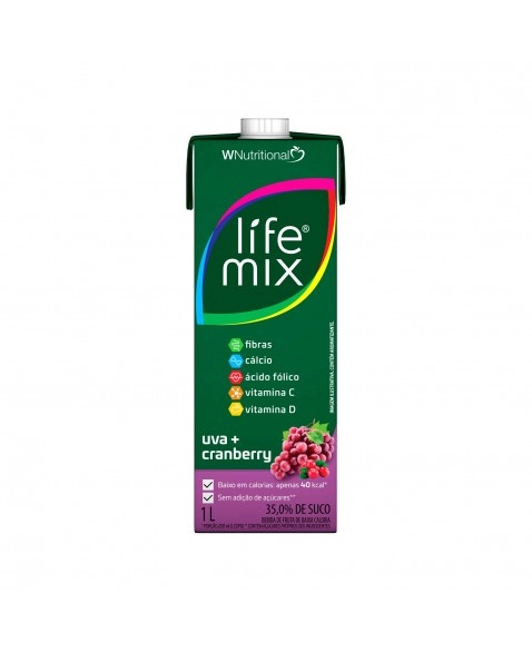 BEBIDAS>SUCOS>SUCO BAIXA CALORIA UVA E CRANBERRY - 35% SUCO INTEGRAL - LIFE MIX - 1 LITRO
