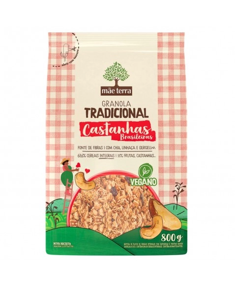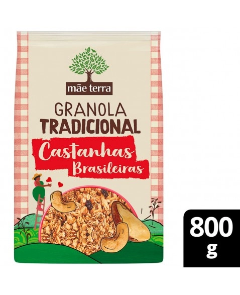 CATEGORIA ALIMENTAR>ZERO LACTOSE>Granola Tradicional Com Castanhas - MÃE TERRA - 800g