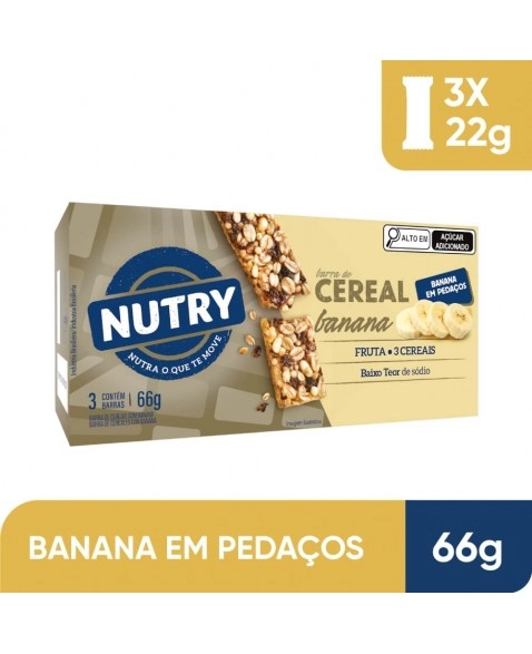 CATEGORIA ALIMENTAR>ZERO>Barra De Cereais Banana - Nutry - Caixeta 3 X 22g - Com 3 Cereais e Banana em Pedaços