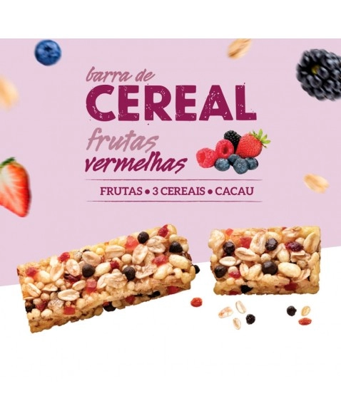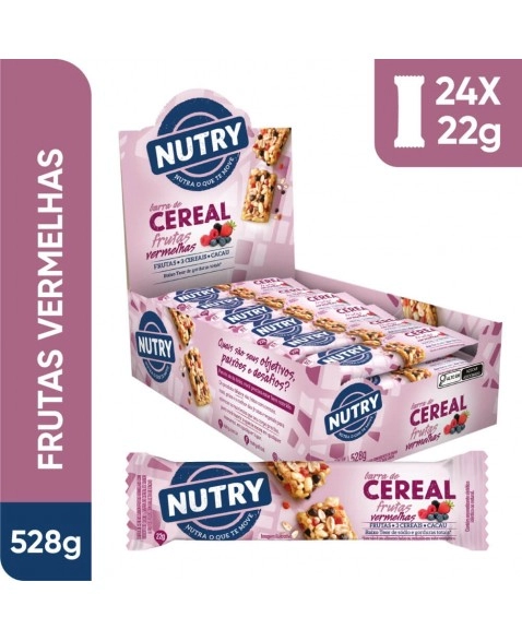 CATEGORIA ALIMENTAR>ZERO>Barra de Cereais Frutas Vermelhas - Nutry - Display 24 X 22g - Com 3 Cereais, Fruta e Cacau