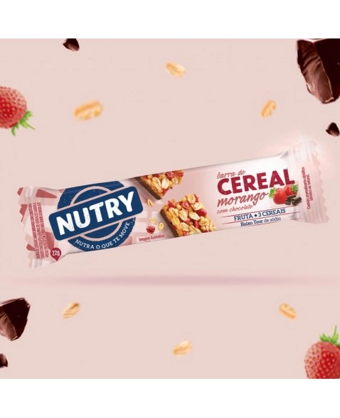 Barra de Cereais Morango com Chocolate - Nutry - Display 24 X 22g - Com 3 Cereais e Fruta
