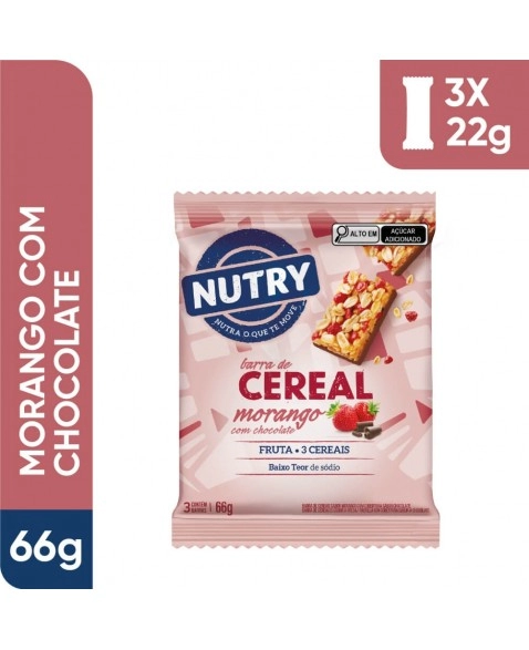 CATEGORIA ALIMENTAR>ZERO>Barra de Cereais Morango Com Chocolate - Nutry - Multipack 3 X 22g - Com 3 Cereais e Fruta