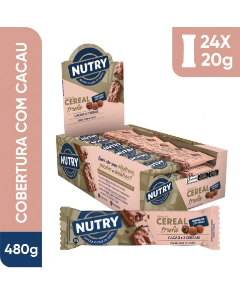 CATEGORIA ALIMENTAR>ZERO>Barra de Cereais Trufa - Nutry - Display 24 X 20g - Com 3 Cereais e Cobertura com Cacau