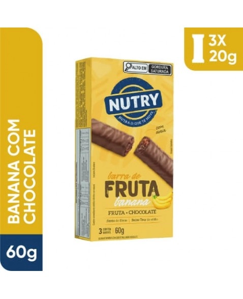 CATEGORIA ALIMENTAR>ZERO>Barra de Fruta Banana - Nutry - Caixeta 3 X 20g - Com Fruta, Chocolate e Aveia