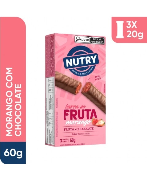 Barra de Fruta Morango - Nutry - Display 24 x 20g - Com Fruta, Chocolate e Aveia
