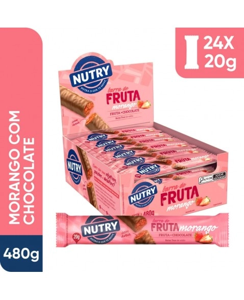 CATEGORIA ALIMENTAR>ZERO>Barra de Fruta Morango - Nutry - Display 24 x 20g - Com Fruta, Chocolate e Aveia